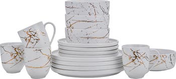 These sleek porcelain tableware settings are accentuated by a brilliant splash of gold. It has a modern art, downtown look and feel. It includes large round dinner plates, classy round salad plates, deep round bowls and rounded 12 oz. mugs. These home essentials are expertly crafted and artfully designed. 100% dishwasher safe for easy cleaning and durability. The hip, trendy design pairs exquisitely with both formal and casual cutlery, as well as with your favorite glassware and tablecloths. Thank you for choosing Stone Lain, where dishes come true.