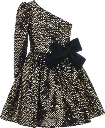The Zoria dress is a dazzling statement piece perfect for the fashion-forward girl. Its sequin design catches the light beautifully, giving it a luxurious and eye-catching shimmer. The one-sleeved style adds a modern, asymmetrical twist to the dress, creating a look that’s both bold and unique. Featuring a sleek bow belt, this dress accentuates the waist with a touch of elegance. The contrast between the sparkling sequins and the chic bow creates a striking balance, making it ideal for special occasions or parties. The fitted design ensures a flattering and comfortable fit.