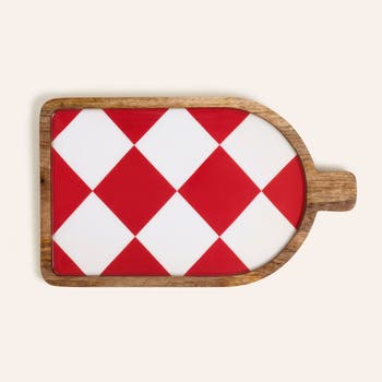 Every colorful touch brings extra joy to the table. Carrying the cheerful spirit of the Cheerland collection, the LAKRI mango wood serving board measures 16x9 and blends the warmth of natural wood with vivid enamel patterns. Its surface is shaped entirely by hand, combining the skill of Indian artisans with the innovative vision of the Zsa Zsa Zsu Design Team. Whether you serve cheese, fruits, desserts or coffee companions, this board creates an instant atmosphere. It adds personality to any table while making serving feel special. Hand wash recommended.