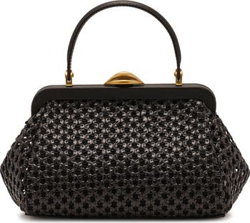 Puffy threads are woven through the open-weave raffia of this structured top-handle bag that comes with a detachable crossbody strap for carrying versatility.