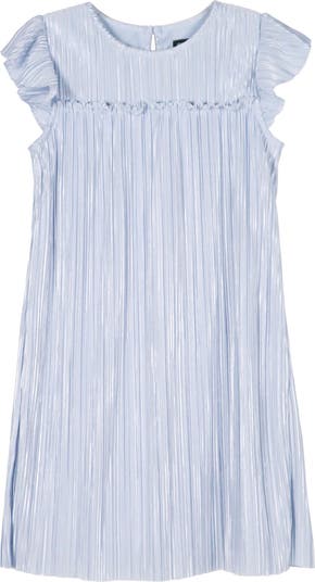 Plissé texturing lends movement to this foil-printed dress framed by fluttery sleeves that will have your kiddo looking their best.