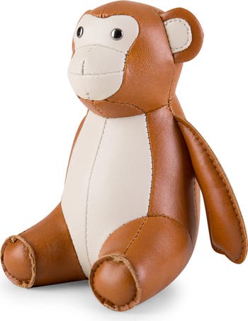 Adorably shaped from soft faux leather, this monkey is all about keeping things right where they belong on your desk.