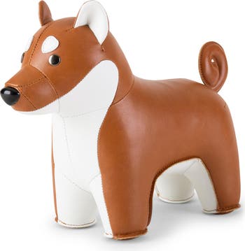 Adorably shaped from soft faux leather, this sculptural Shiba Inu blurs the line between functionality and art as it keeps your bookshelf neat and tidy.