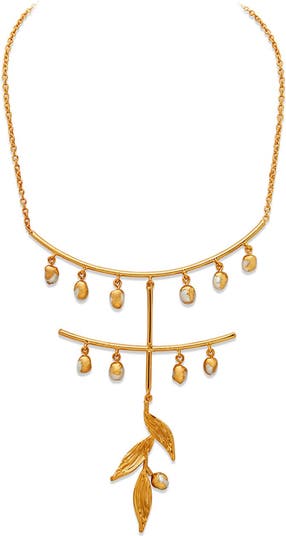 - Material: 22k gold-plated brass with gold dipped baroque pearls.