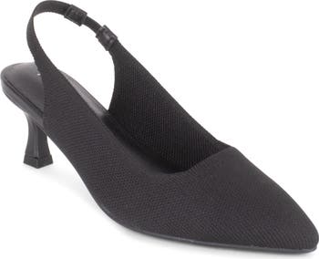 A breathable knit upper and cushioned footbed ensure daylong comfort in this almond-toe pump secured with a stretchy slingback.