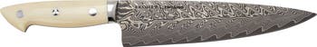 How it's made: Crafted for maximum maneuverability, this full-tang knife is made with an SG2 super-steel core and hand-finished using a traditional three-step process. The lightweight-yet-durable blade is cryogenic ice-hardened to 63 Rockwell, with a 9–12° angle on each side for scalpel-like sharpness.