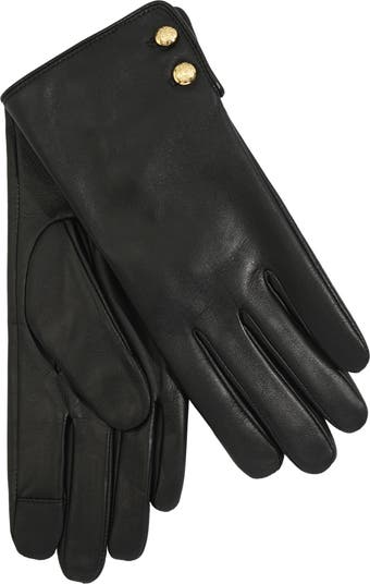 Stay connected and stylish with our Leather 2-Button Touch Glove. Crafted from 100% sheepskin leather, these gloves feature touch tips for convenience and LWG certification for sustainability. The Lauren crest buttons add a touch of sophistication, making them an essential accessory for the modern winter wardrobe.
